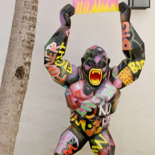Decoration haut de gamme terrasse en rotin synthetique, statue en resine, table en bois. Lorenz Bali sourcing fabricant production design sur mesure.
