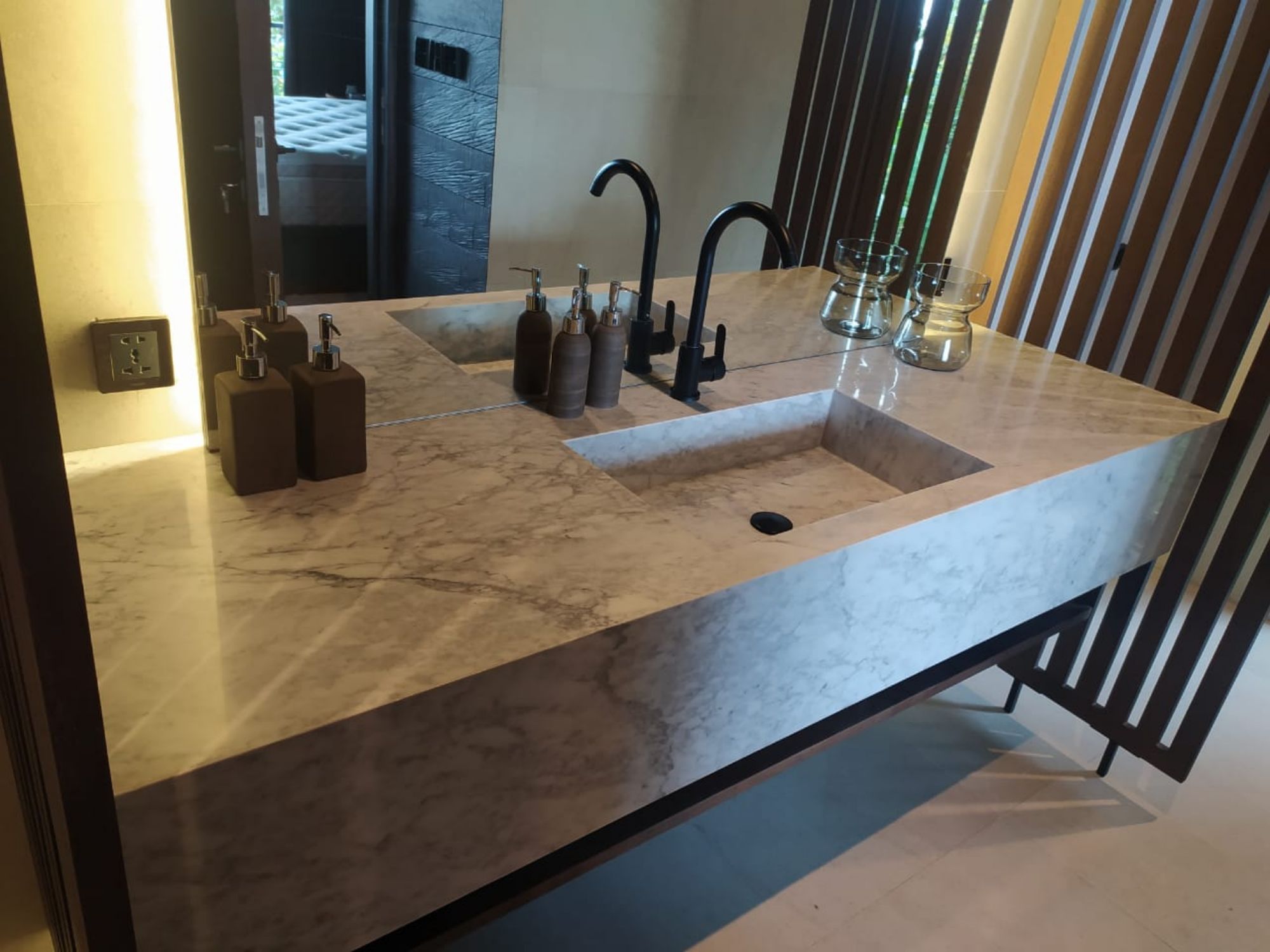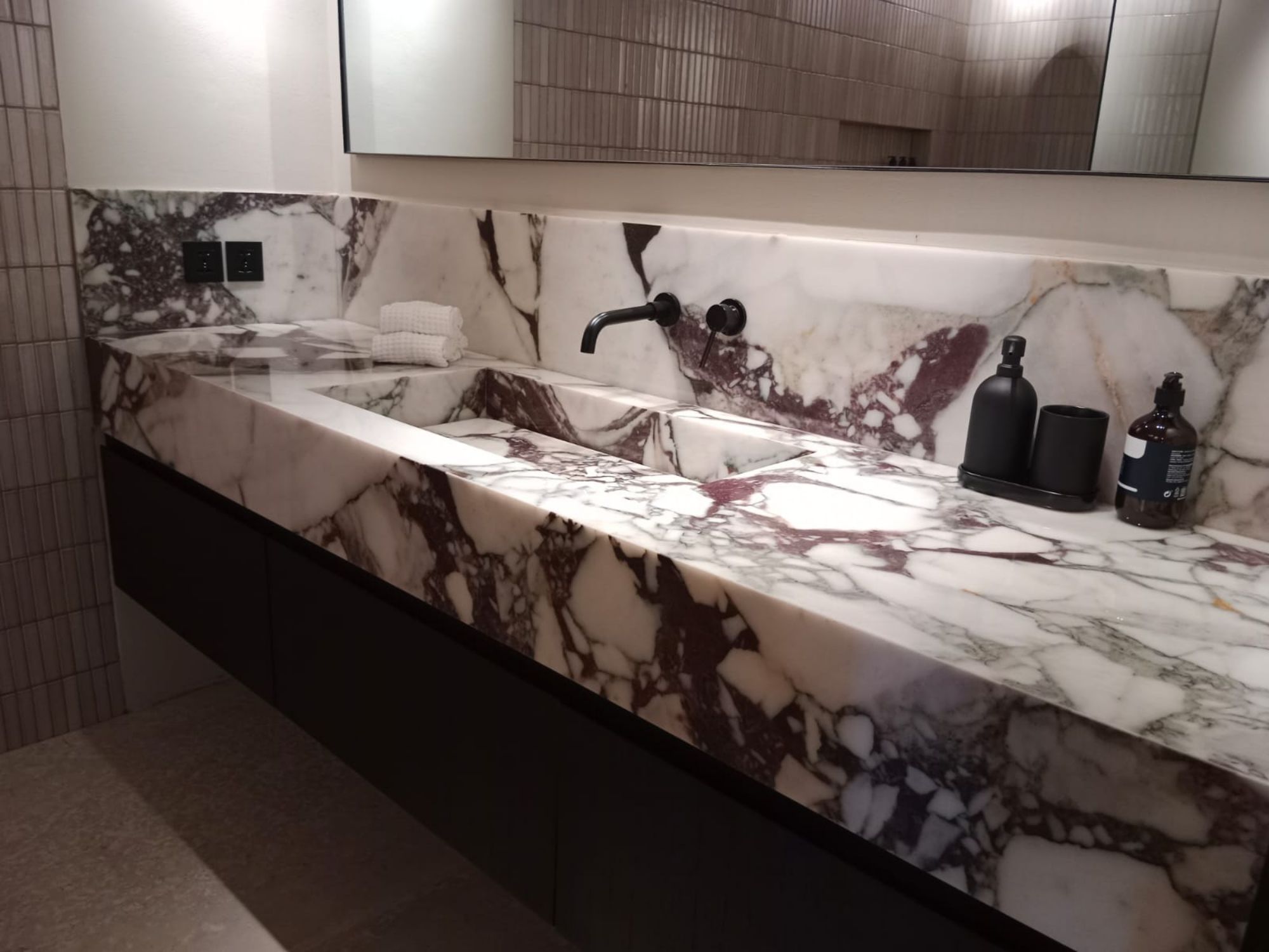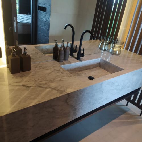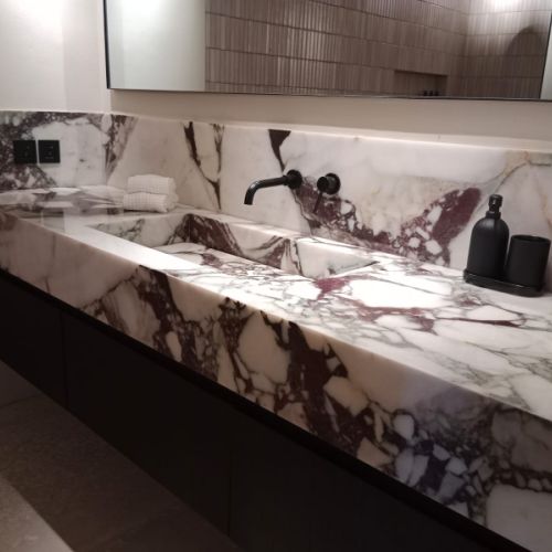 Marbres importes selon disponibilites : Bianco Carrara, Onyx, Himalaya, Travertino, Calaccatta, Pergamena, Palissandro, Crystal Pink...