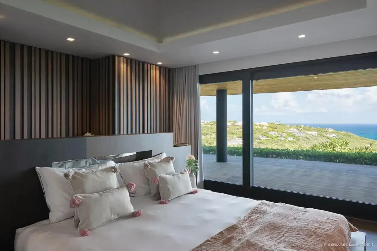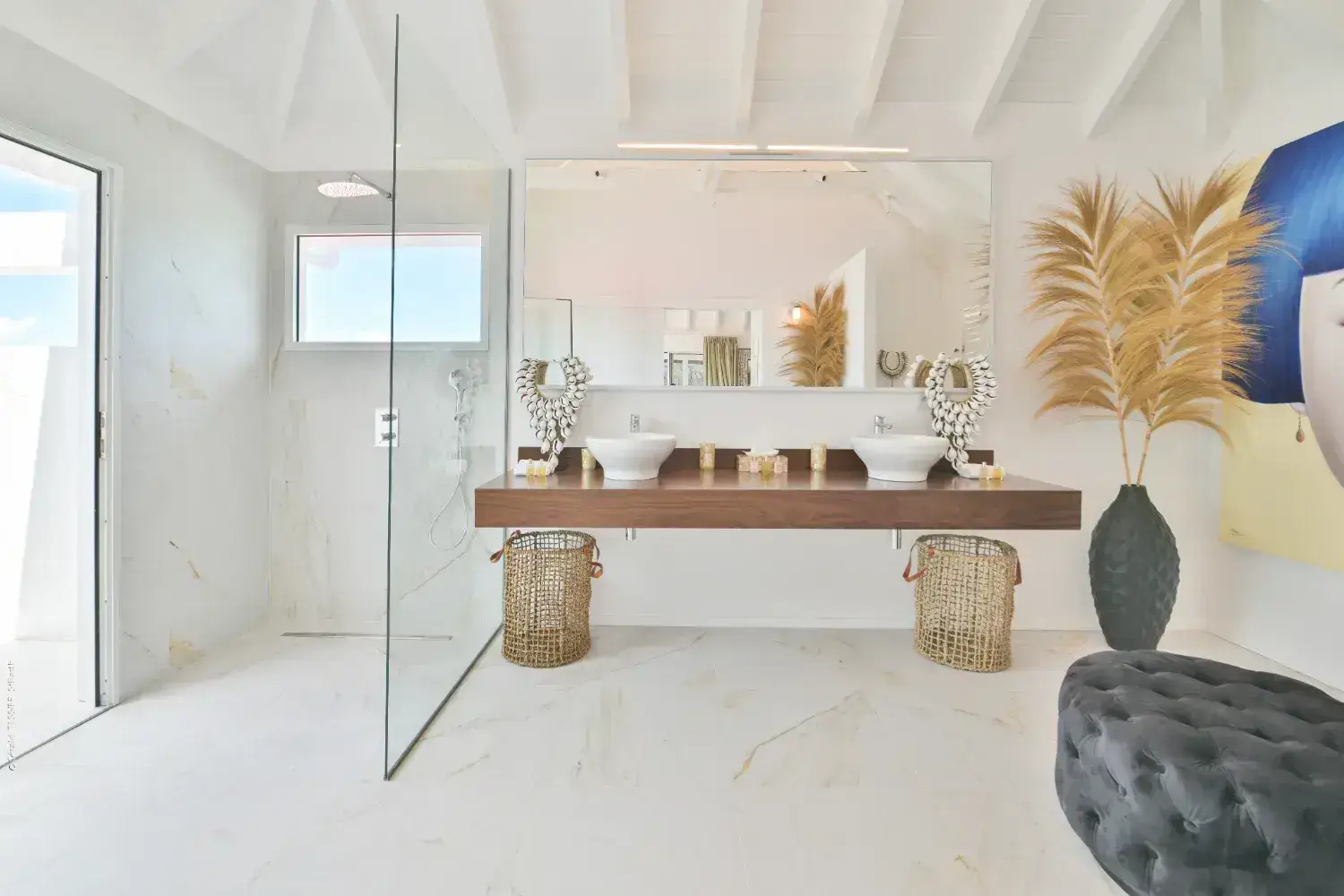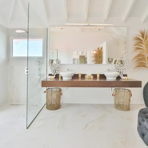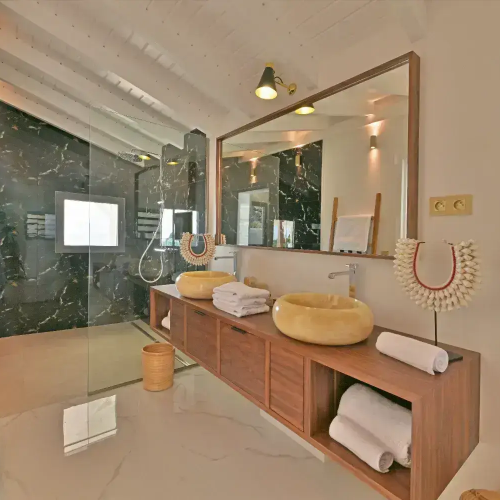 Salle de bain de luxe villa a Saint Barthelemy Caraibes, Lorenz Bali sourcing fabricant production sur mesure design.