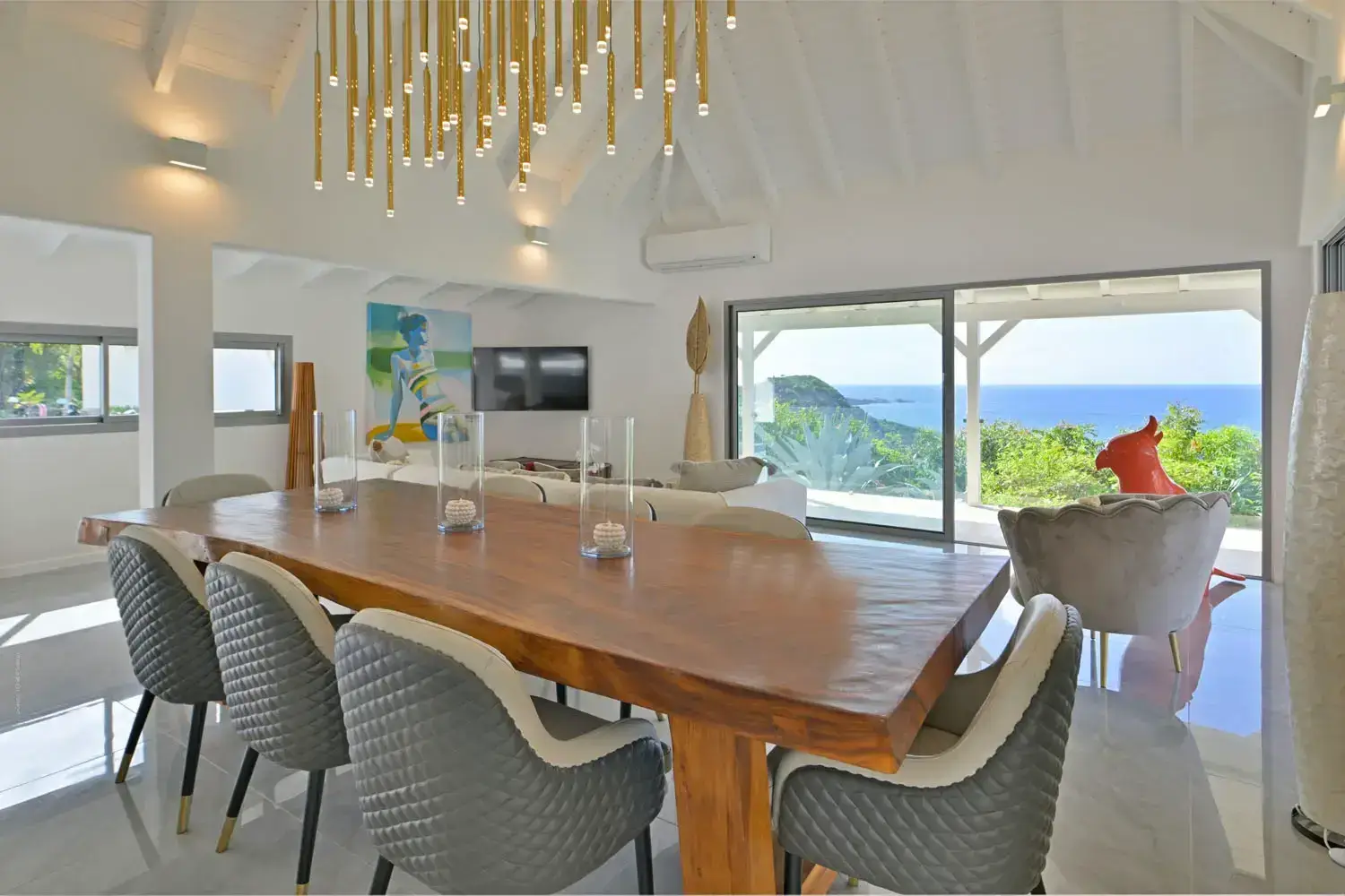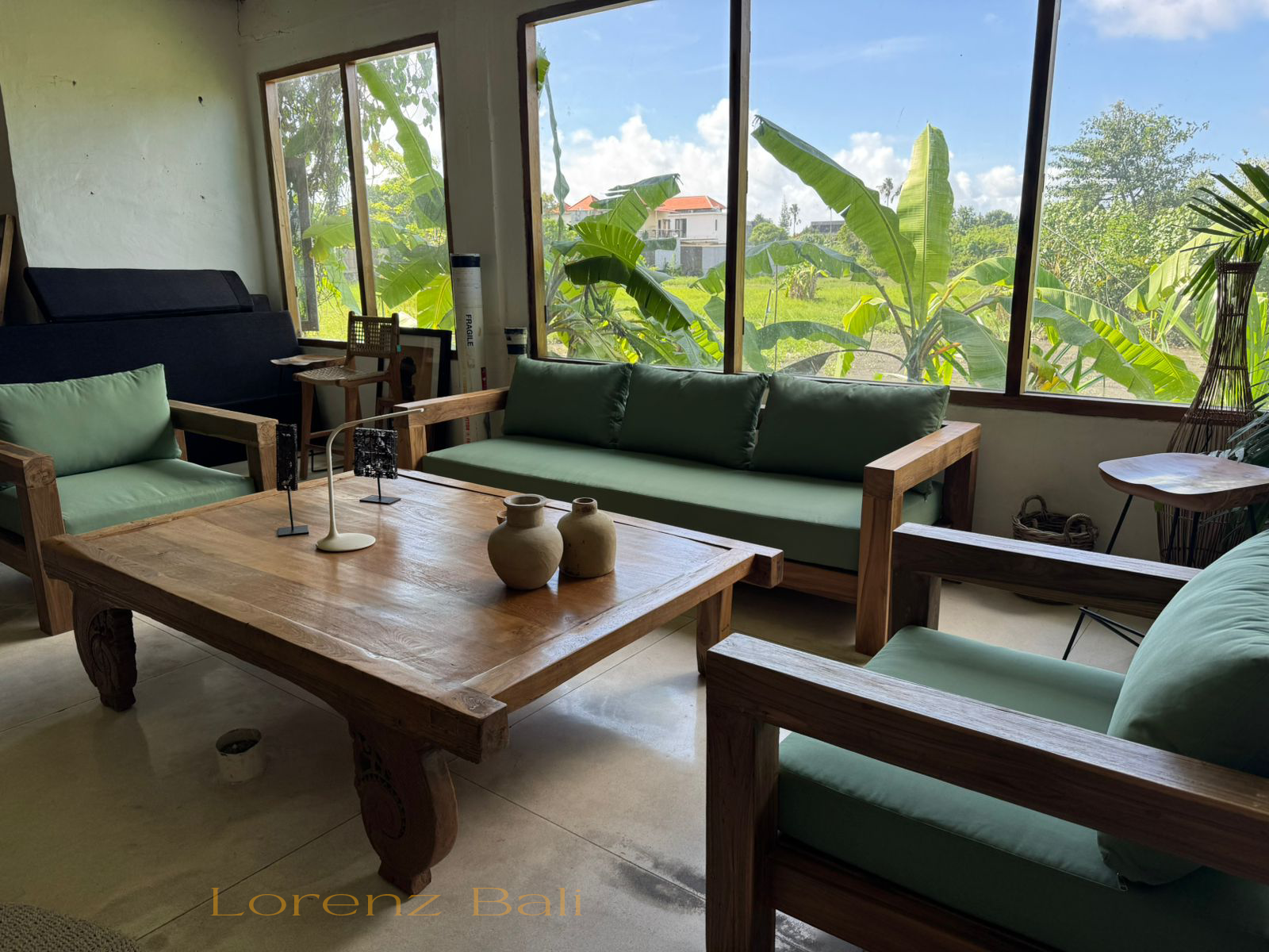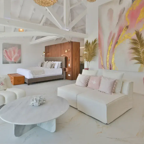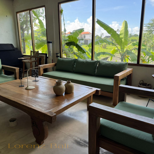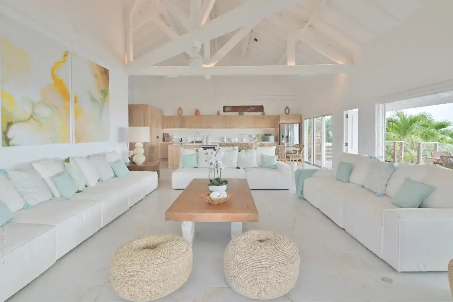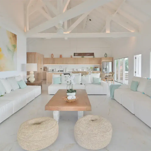 Salon living room luxe pour une villa a Saint Barthelemy Lorenz Bali sourcing fabrican production.