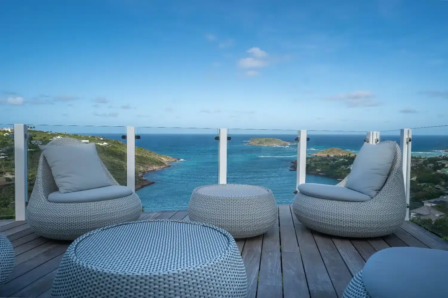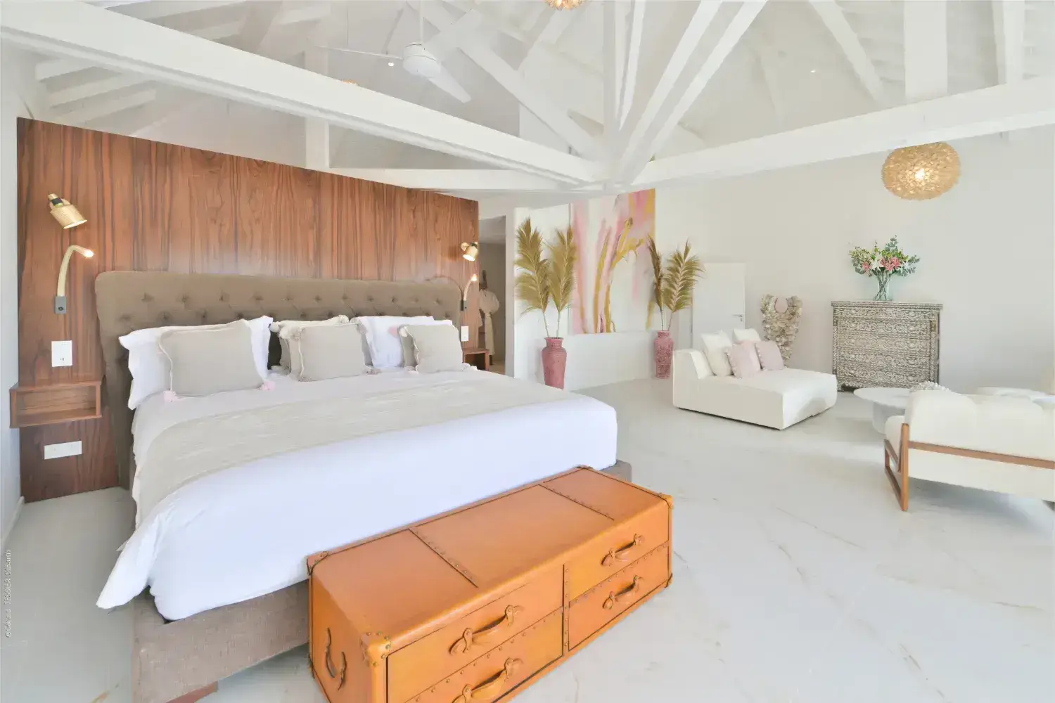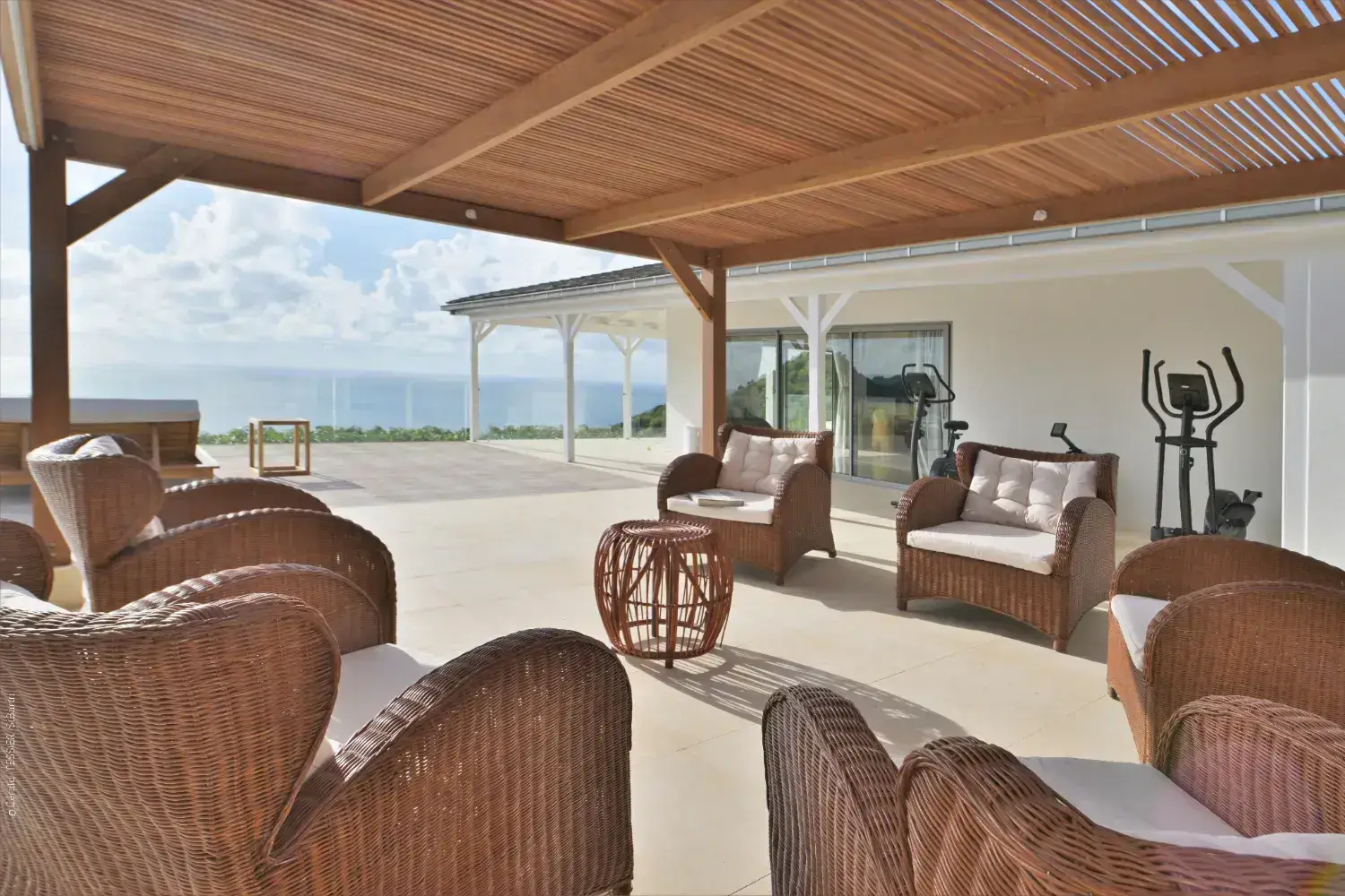 Salon living room luxe pour une villa a Saint Barthelemy Lorenz Bali sourcing fabrican production.